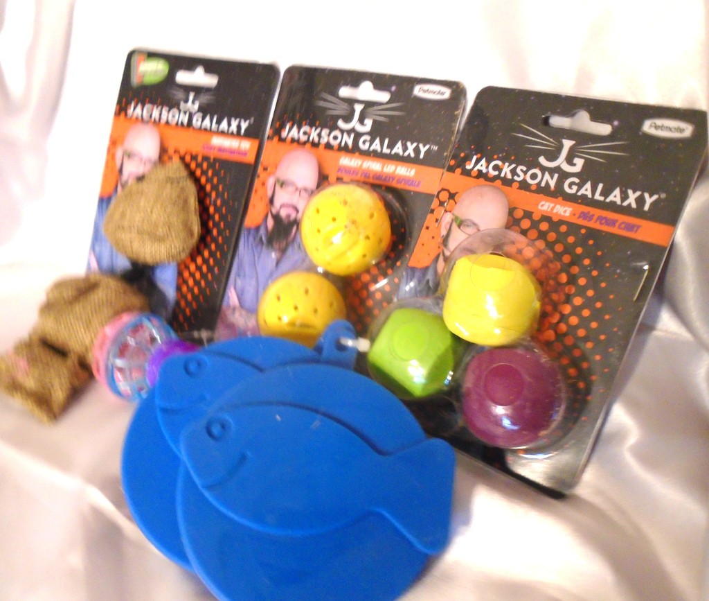 This is a box of assorted cat toys to keep your cat playing for hours.