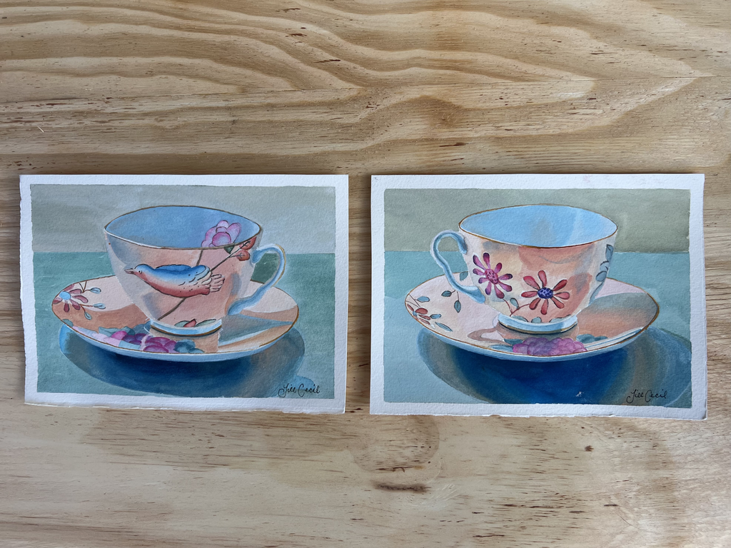 Two Gouache paintings of teacups, 4 3/4? x 6 3/4?