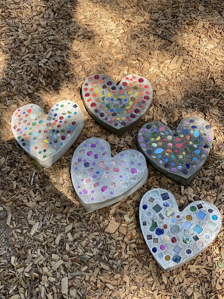 These beautiful hearts are perfect for outdoor use or as meaningful decorative accents indoors. A true testament to the imagination and collaboration of our youngest artists!