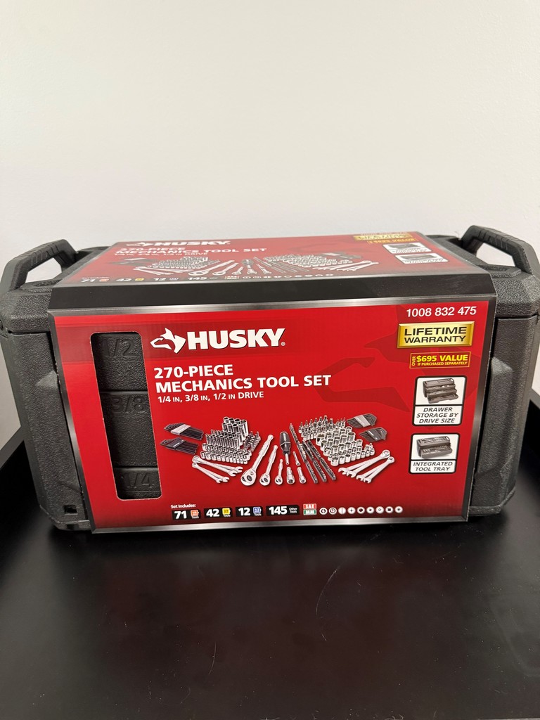 Get the job done right with the Husky 270-Piece Mechanics Tool Set, a comprehensive collection of high-quality tools perfect for auto work, home repairs, and everyday projects. Whether you're a seasoned mechanic or a weekend warrior, this set has the versatility and durability you need.