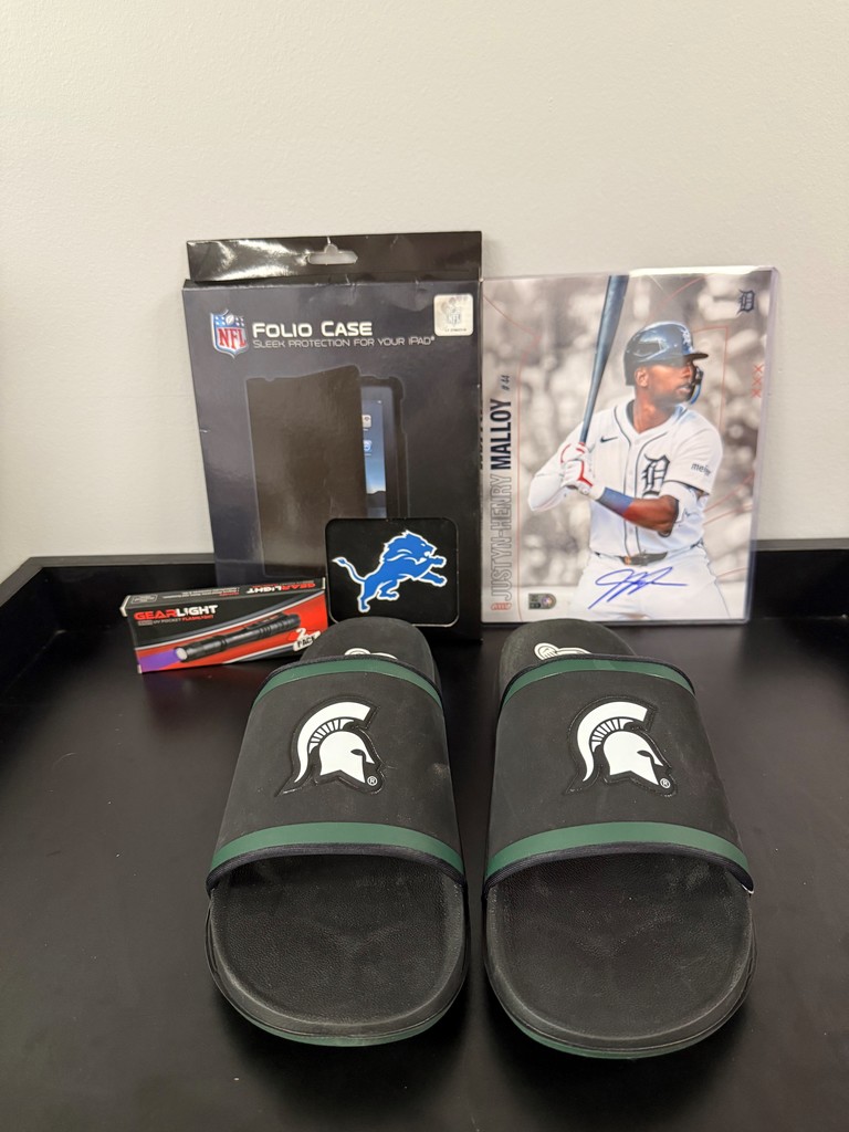- MSU Nike Sandals ($40 Value) - Step into comfort and show your Spartan pride with these officially licensed Nike MSU sandals, featuring durable construction and bold team graphics. Size 14