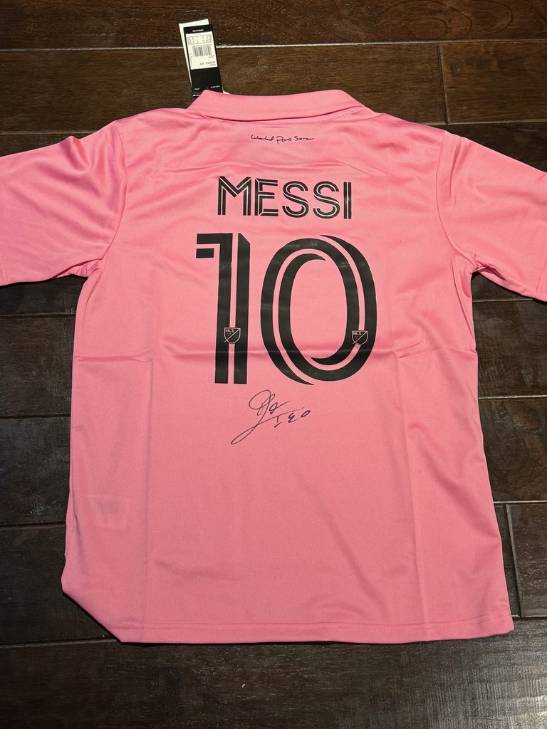 Often considered the best player in the world and rated by many in the sport as the greatest of all time, Messi is the only football player in history to win five FIFA Ballons d'Or, four of which he won consecutively, and the first player to win three European Golden Shoes. Comes with a certificate of authenticity.