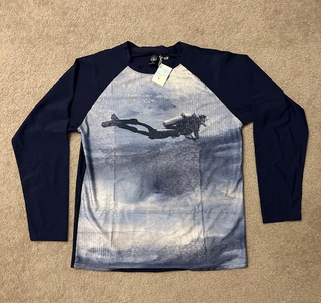 Perfect Holiday Gift (and there are matching Shirts in the Auction, in different sizes - to get Matching Items for Family and Friend). New with tags. Size "Adult, Medium". Navy blue, long-sleeve Rashguard / Sunshirt. Can be mailed nationwide to Winner (with insurance) or picked up for FREE in Enfield, CT.