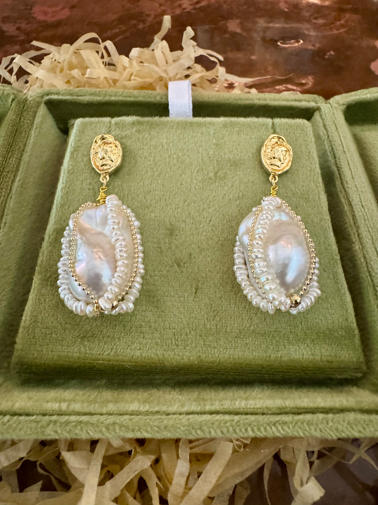 ? ? Encircled with micro seed pearls and gold-plated bead detailing, creating a soft, radiant frame.