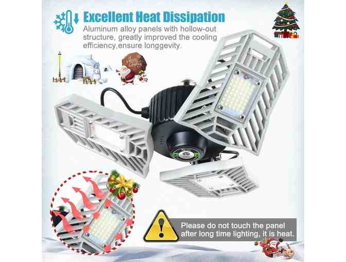 3 panel aluminum framed LED light is a perfect replacement for any indoor bulb that uses a medium base ceiling socket. The garage led light can be adjusted for direct down light or easily move the three panels to light up a larger area, meet different required working light . MIND: DO NOT TOUCH OR CLEAN the flexled 6000 lumen led light when it is working.