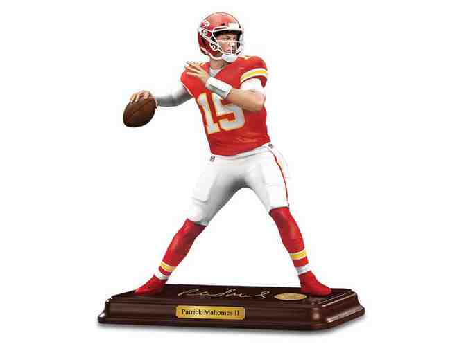 • Mounted on a handsome wooden base, accented with Mahomes’ reproduced signature.