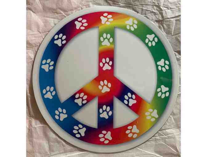 Magnet -- Rainbow Background - Peace Sign with Paw Prints -- BUY-IT-NOW
