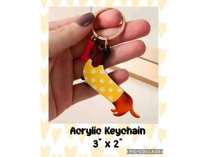 Fun Plastic Dachshund Keychain - Yellow coat with paw prints! - BUY-IT-NOW!