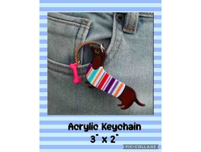 Fun Plastic Dachshund Keychain - Stripes! - BUY-IT-NOW!