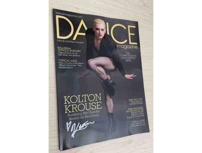 An exclusive signed copy of Dance Magazine's July 2023 issue by Broadway star and NYCDA alum Kolton Krouse.