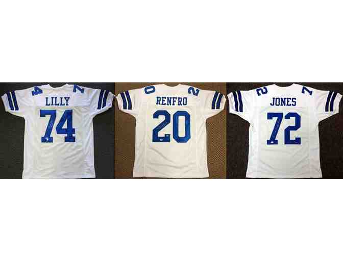 The winning bidder selects the hand signed jersey from the legend of their choice: Bob Lilly, Mel Renfro, or Ed "Too Tall" Jones. Each item includes a letter of authenticity.