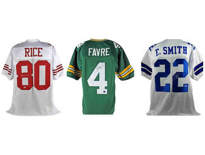 Jerry Rice (Touchdowns), Brett Favre (Completions), orâ Emmitt Smith (Rushing Yards). Each item includes a letter of authenticity.