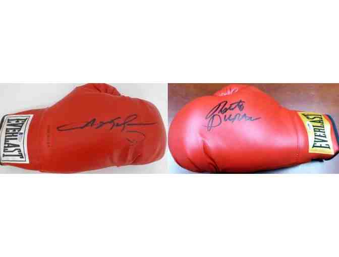 The winning bidder selects the hand signed boxing glove from the legend of their choice: Sugar Ray Leonard or Roberto Duran