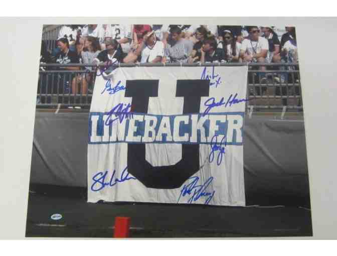 Penn State All Time Greats Linebackers Large Autographed Photo. Signatures include Jack Ham, Shane Conlan, Sean Lee, Greg Buttle, Lavar Arrington, Paul Posluszny, and Andre Collins. Comes with certificate of authenticity.