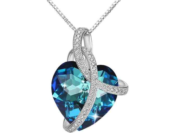 EleQueen 925 sterling silver blue CZ 'courageous heart' inspired pendant necklace. Made with Australian crystals from Swarovski. Lead and nickel-free.