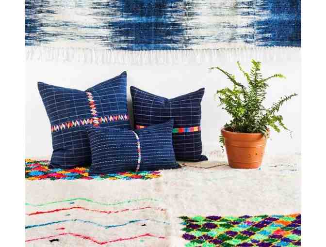 This set of three pillows has been repurposed from vintage handmade clothing textiles from Guatemala that feature a hand-embroidered "randa" or decorative seam. Premium faux down inserts are included so these pillows are ready to style. Backed in vintage dark indigo fabric.