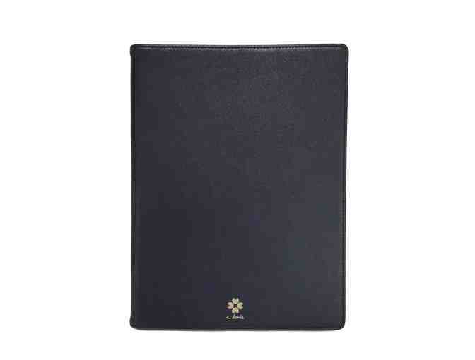 Stay chicly organized with this Saffiano leather covered work folio. The folio opens up to reveal several functional pockets. Large pocket on left side fits A4 papers. Zipped pocket keeps your pens and small items secure. Card slot to put your business cards. Right side is a padded sleeve that will fit an iPad Pro 9.7" or a mobile-sized laptop up to 12".