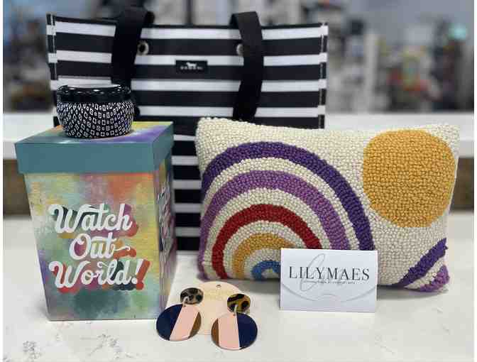 A wonderful gift basket is up for grabs from Lily Mae’s. Inside is a $75 Gift Card, Scout Bag, Peking Hancraft Pillow, Capri Blue Candle, Sunshine Tienda Earrings, and Evergreen Ceramic Cup.