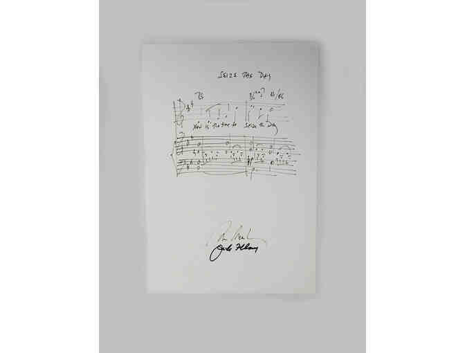 Now is the time to seize the day and bid on this handwritten musical phrase from Newsies. The phrase is from the iconic song Seize the Day and has been signed by Alan Menken and Jack Feldman.