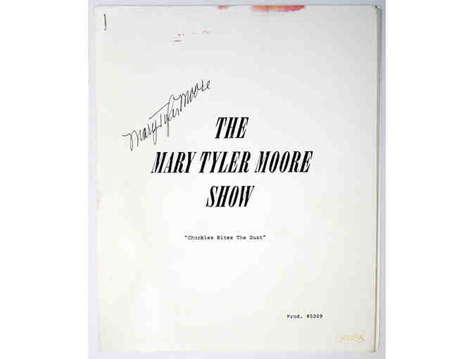 This is a copy of the script for the iconic Mary Tyler Moore Show episode Chuckles Bites the Dust that has been autographed by Mary Tyler Moore.