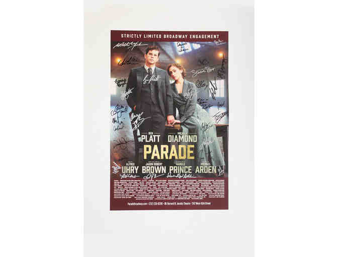 Parade Broadway revival window card autographed by at least 25 members of the cast including Micaela Diamond, Ben Platt, Kelli Barrett, Erin Rose Doyle, Manoel Felciano, Jay Armstrong Johnson, Sean Allan Krill, Howard McGillin and Paul Alexander Nolan.