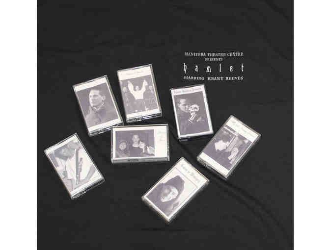 In 1995, Keanu Reeves, known for his blockbuster action films, stepped into the role of Hamlet at the Manitoba Theatre Centre in Winnipeg. Although it was before the era of ubiquitous video recording, audio recordings of Keanu's performances were captured on cassette tapes. Additionally, this collection includes a brand-new, officially licensed Hamlet merchandise shirt from the show in size Large.