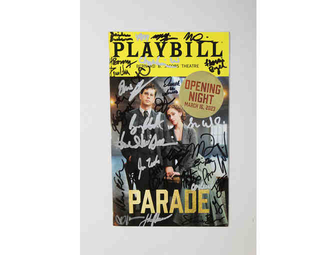 Upon their closing, the Broadway revival of Parade donated some exceptional items in support of Broadway Cares. This Parade opening night Playbill has been autographed by over 30 members of the cast including several principal cast members. Signature include Micaela Diamond, Ben Platt, Kelli Barrett, Erin Rose Doyle, Manoel Felciano, Jay Armstrong Johnson, Sean Allan Krill, Howard McGillin and Paul Alexander Nolan.