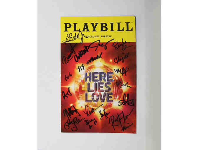 The fantastic and highly anticipated Broadway production of Here Lies Love is making the Broadway Theatre a dance party every night. This Playbill from the show has autographs from 20 members of the Broadway cast, including most of the principal actors. Confirmed signatures include Arielle Jacobs, Jose Llana, and Lea Salonga.