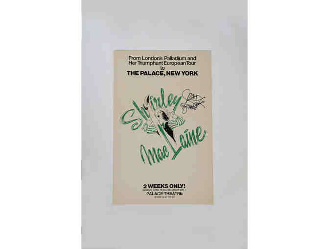 In 1976, Shirley MacLaine performed her celebrated solo show at the Palace Theater for only two weeks. This poster from her self-titled one-woman show, bearing her autograph, is a rare find. It should be noted that the poster shows signs of age and wear, including some flaws.