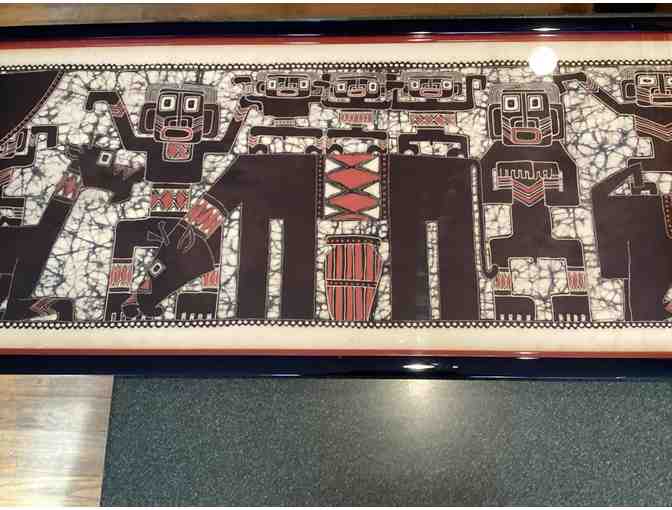 We think it's on fabric, large piece, 56.5 x 19, the name Sunarto lower right corner. Purchased at sale years ago for $400.00