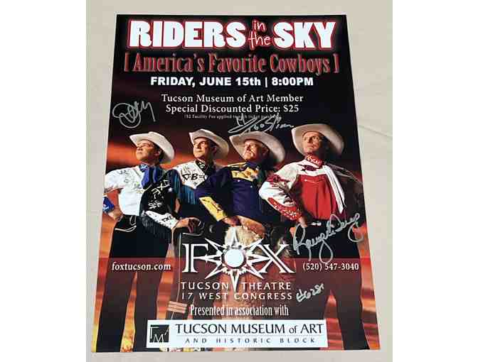 Poster autographed by "America's Favorite Cowboys", Riders in the Sky. From a performance at the Fox Theater.