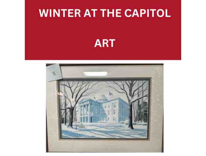 Jerry Miller's WINTER AT THE CAPITOL. Watercolor, triple matted and framed. From the estate of Barbara Boney Campbell.