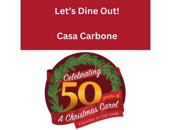 Enjoy dinner for 2 at Casa Carbone. Gift certificate is a $60 value.