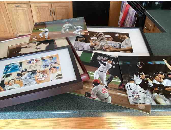 1991 Old Timers Limited Edition Upper Deck Print, AUTOGRAPHED by Ron Guidry and Jim "Catfish Hunter", CANNOT AUTHENTICATE, however, we know the source and believe they are, no guarantees, 4 Photos from World Series vs Phillies, Yogi Berra in Beautiful Frame.