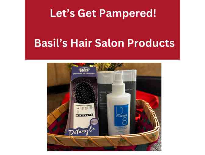 Enjoy four designer hair products from Basil's Hair Salon. Items include a detangling "Wet" brush, Living Proof Shampoo & Conditioner and 1 bottle of DChlorin8 Leave-in conditioner.