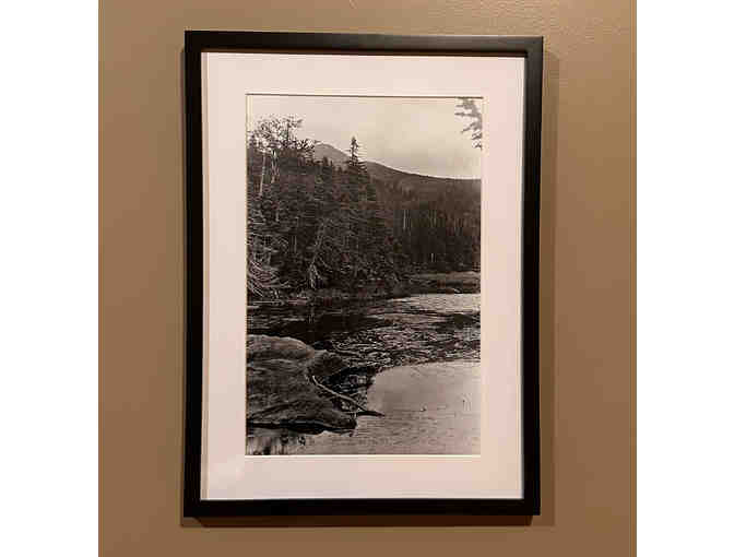 A framed photographic print from historic photographer Frances Bayle, Lake Tear of the Clouds, 1915. Frame 17" x 23" image 12" x 18."
