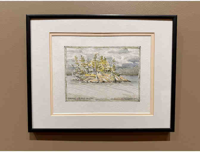 An original watercolor by local artist Alice Wand, "Saranac Island with Gulls" 2011.