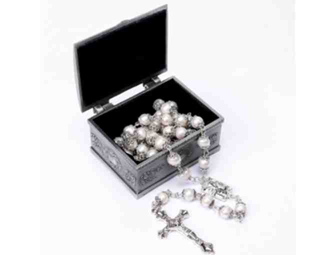 EXQUISITE JEWELRY BOX: Our carefully crafted rosary and jewelry box with vintage engraving can be purchased for family and friends