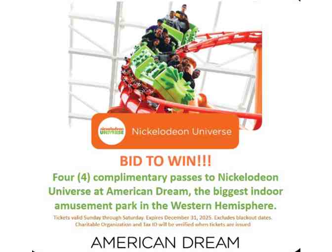 You are bidding on 4 single day passes to Nickelodeon Universe Theme Park in New Jersey.