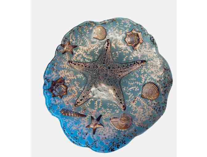 Bring the beauty of the ocean into your home with this stunning decorative beach art plate. Featuring an elegant design of starfish and seashells, this piece captures the serenity of the shore with its coastal-inspired details. Perfect as a centerpiece, wall décor, or a charming addition to any beach lover’s collection. Bid now to bring a touch of the sea to your space!