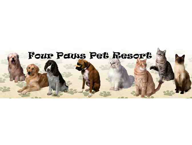 Leaving town? Give your pet a vacation with this $225.00 gift certificate to Four Paws Pet Resort! This certificate is good for 3-night stay, play time 2X per day and departure bath.
