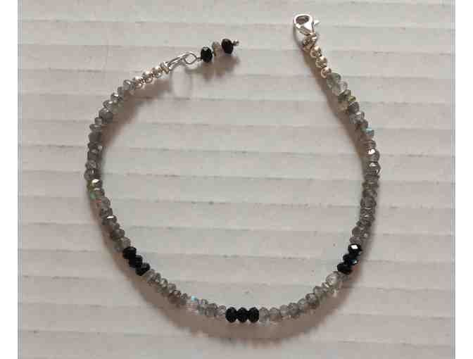 This beautiful 8" stacking bracelet features a stunning combination of Labradorite and Black Tourmaline beads, accented with sterling silver. The natural stones bring a touch of elegance and grounding energy to any outfit, making it the perfect addition to your jewelry collection.