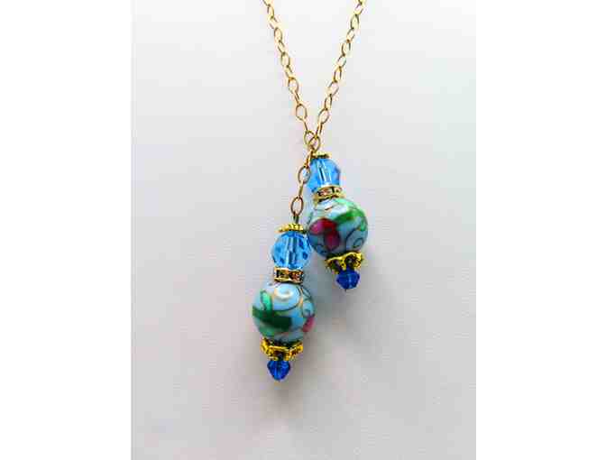 Lariat with Light Blue Glass and Crystal Beads - 21