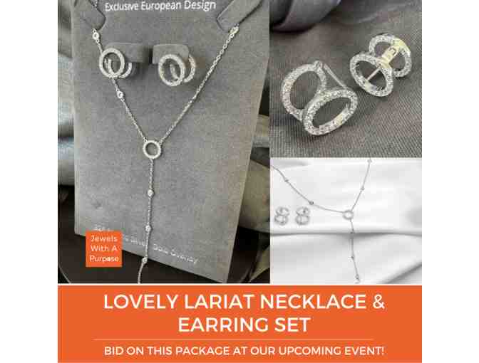 Lovely Lariat Necklace & Earrings Set in White Gold