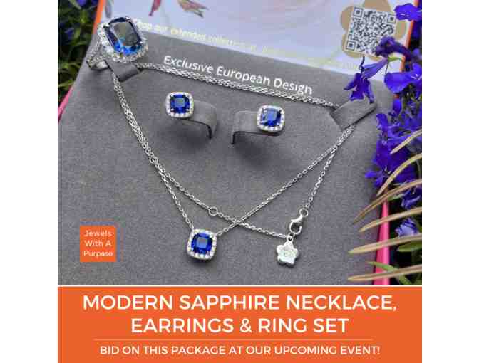 Modern Sapphire Necklace, Earrings & Ring Set in White Gold