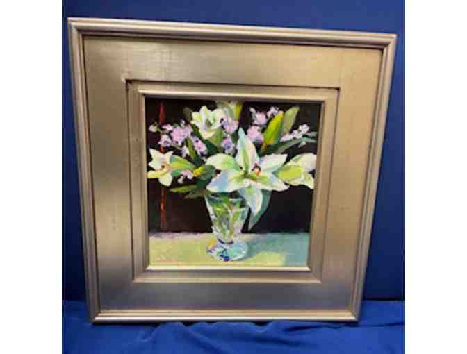 "Easter Lillies in My Studio" Original painting with palette knife.