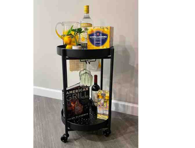 This bar cart is your new favorite party companion and it comes stocked to get the good times rolling!