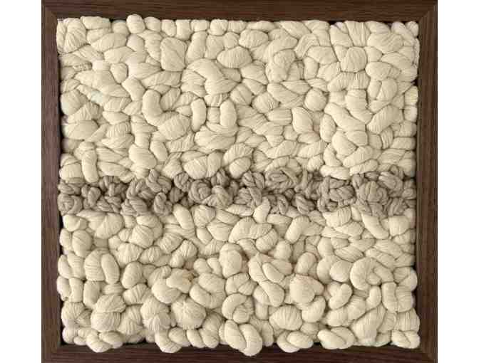 Flourish 5, 2025, corde de coton, trame de coton/polyester, cadre sur mesure en noyer, tissage, 13,5 po (haut) x 14,75 po (largeur) x 1,25 po (profondeur)