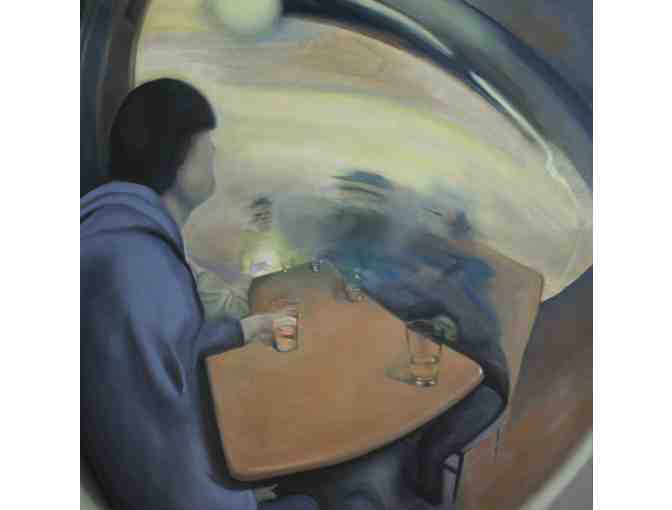 someshi_idid blurs the illusion of separation between the subject of the painting and the viewer. Using hands and other elements that act as extensions of the onlooker, the strangely familiar scenes wrap around them. She's pulled toward the pangs of isolation and unease that we try to escape.