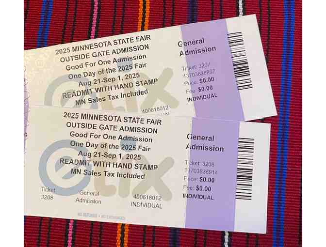 2 admission tickets for the 2025 Minnesota State Fair ~ Value of $40